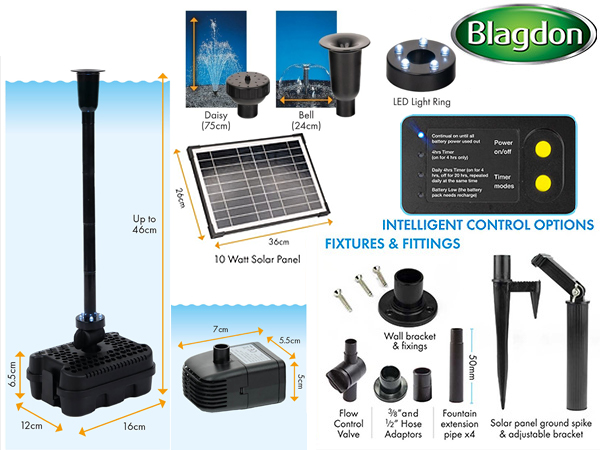 You Are Here : Pond Products > Pumping and Filtering your Pond > Solar Fountain and Feature Pumps > Blagdon Liberty 500 Solar Pump and Light Kit