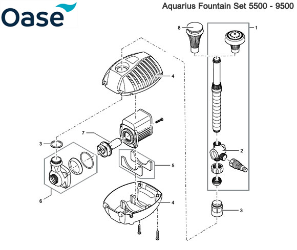 Oase Aquarius Fountain Set 5500 - 9500 Pump Spare Parts