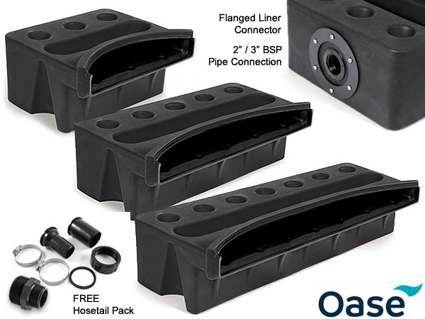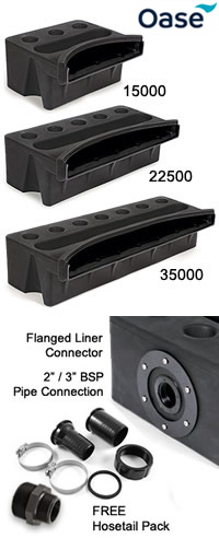 | The Oase Watercourse Spring / Spillway Boxes are a simple solution to the problem of installing a waterfall without a header pool. These one piece waterfall boxes are simply placed on the liner at the top of the stream with the rear flange sealing to the liner at the back of the box. These ultra strong boxes are designed to be covered in rocks and cobbles and have a raised lip on the top of the water chute to prevent stones, cobbles or even soil falling into the water. In addition to adding strength, the internal support cones also diffuse the waterflow to ensure an even coverage across the outflow lip. Unlike other spillways these one piece watercourse springs are completely sealed, so no matter how much water is pumped in, the only place it can come out is through the opening at the front, ensuring water is never lost. Oase Watercourse Spring / Spillway Box Dimensions Oase Watercourse Spring 15000 - 521mm long x 474mm wide x 260mm high (480mm Waterfall width) Oase Watercourse Spring 22500 - 699mm long x 474mm wide x 260mm high (660mm Waterfall width) Oase Watercourse Spring 35000 - 1003mm long x 486mm wide x 260mm high (960mm Waterfall width) Oase Watercourse Spring / Spillway Box Features One piece boxes to ensure leak free installation Flowrate between - 15000 and 36000 litres per hour Extra strong to allow them to be camouflaged with rocks and cobbles 2" (50mm) BSP female connection on 15000 and 22500 3" (75mm) BSP female connection on 35000 2" (50mm) BSP male to male adaptor supplied with 15000 and 22500 3" (75mm) BSP to 2" (50mm) BSP male to male adaptors supplied with 35000 | |||