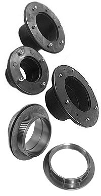 | This solvent weld liner connector can be used to pass a 1½", 2", 3" or 4" rigid pipe through a pond liner or a water tank. The connector is supplied with a fixing ring which allows you to "sandwich" the liner using sealant (not supplied) to ensure a waterproof connection. Allows connection from both sides via a female solvent weld socket | ||||