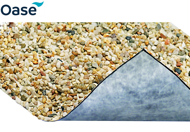 | This Natural Stone edging is ideal for disguising your liner at the edge of the pond, on a watercourse or beach areas. The 0.2 mm thick, black geotextile fabric which is treated with a coating of fine pebbles via a special technical process via a special technical process. As the backing material is water permeable this material is not suitable as a pond liner by itself and must be used in conjunction with either Greenseal, Firestone, Butyl or PVC liners. This product is perfect as a decorative covering in shallow streams and can also offer additional protection when placed over liners in the transition between water surface and bank area. Due to its geotextile fabric backing material this edging can be bonded to both rubber and pvc liners to keep it in place. The Natural Stone edging liner is sold by the metre and cut off a, 400mm or 1000mm wide roll. |