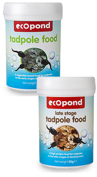 | In many ponds a lack of suitable food reduces the chances of Tadpoles maturing and developing correctly. This Tadpole food from EcoPond provides a helping hand with its specially formulated Tadpole food which will help to maintain a healthy Tadpole population in your garden pond. Ecopond Tadpole Food is a vegetable-based food designed to meet the dietary needs of tadpoles during their early stages of development, up until they develop back legs (4-6 weeks after free swimming begins). Ecopond Late Stage Tadpole Food is a higher protein food designed to meet the dietary needs of tadpoles in the later stages of development, when their back legs have developed (approximately 6 weeks after free swimming begins). EcoPond Tadpole Food - Feeding Advice Sprinkle a pinch of the appropriate food on the pond's surface once a week. EcoPond Tadpole Food - Ingredients Contains Vegetable Derivatives - No Artificial Colouring or Preservatives. | ||