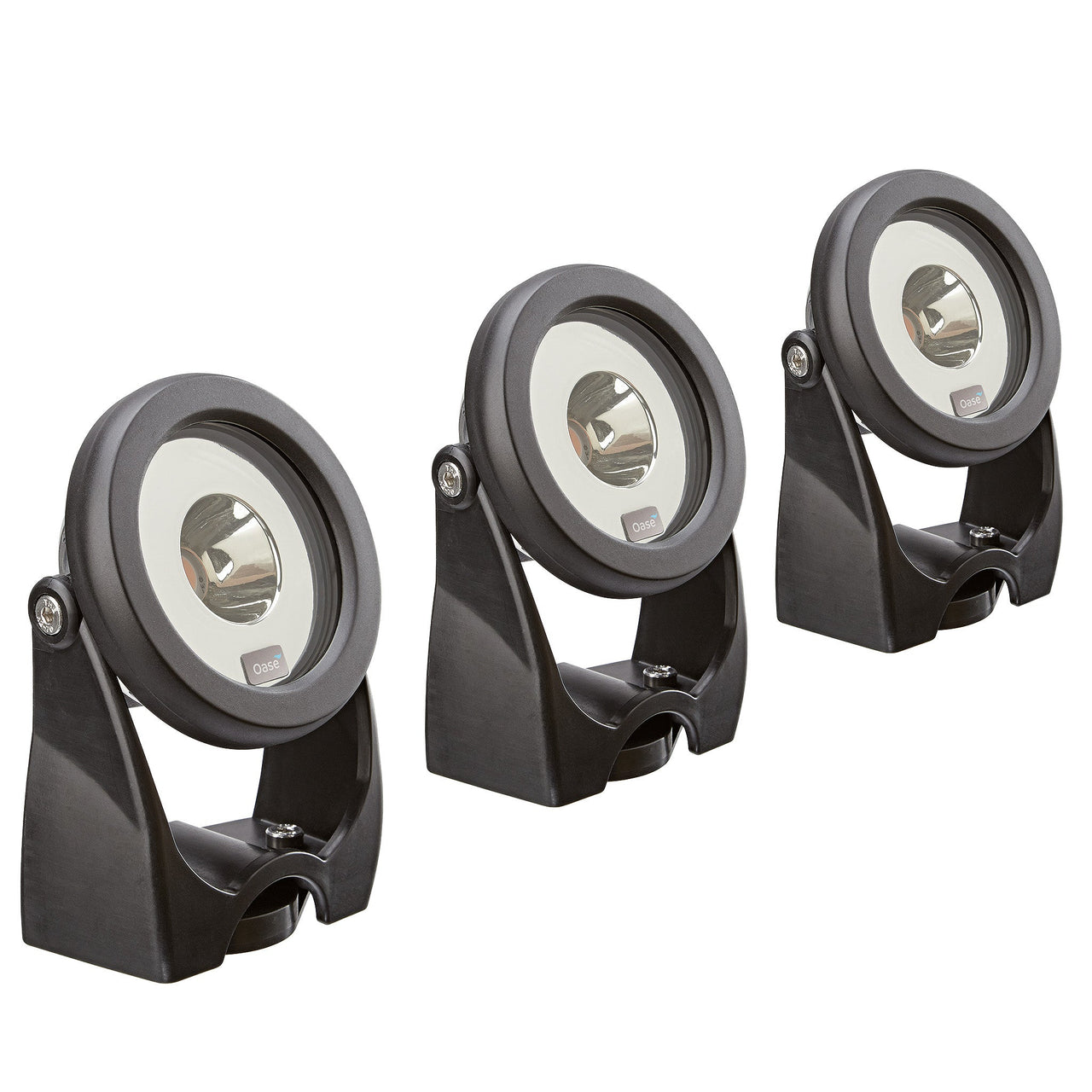 The Oase LunAqua Power LED 3 Light Set is a 3 light set, each of which has a powerful output of warm white light from a small robust compact light unit. These lights produce a considerable quantity of light and significant energy savings and are one of Oases' brightest LED spotlight sets. Each of these spotlights consumes only 5.8w, yet is as bright as a 50w bulb.